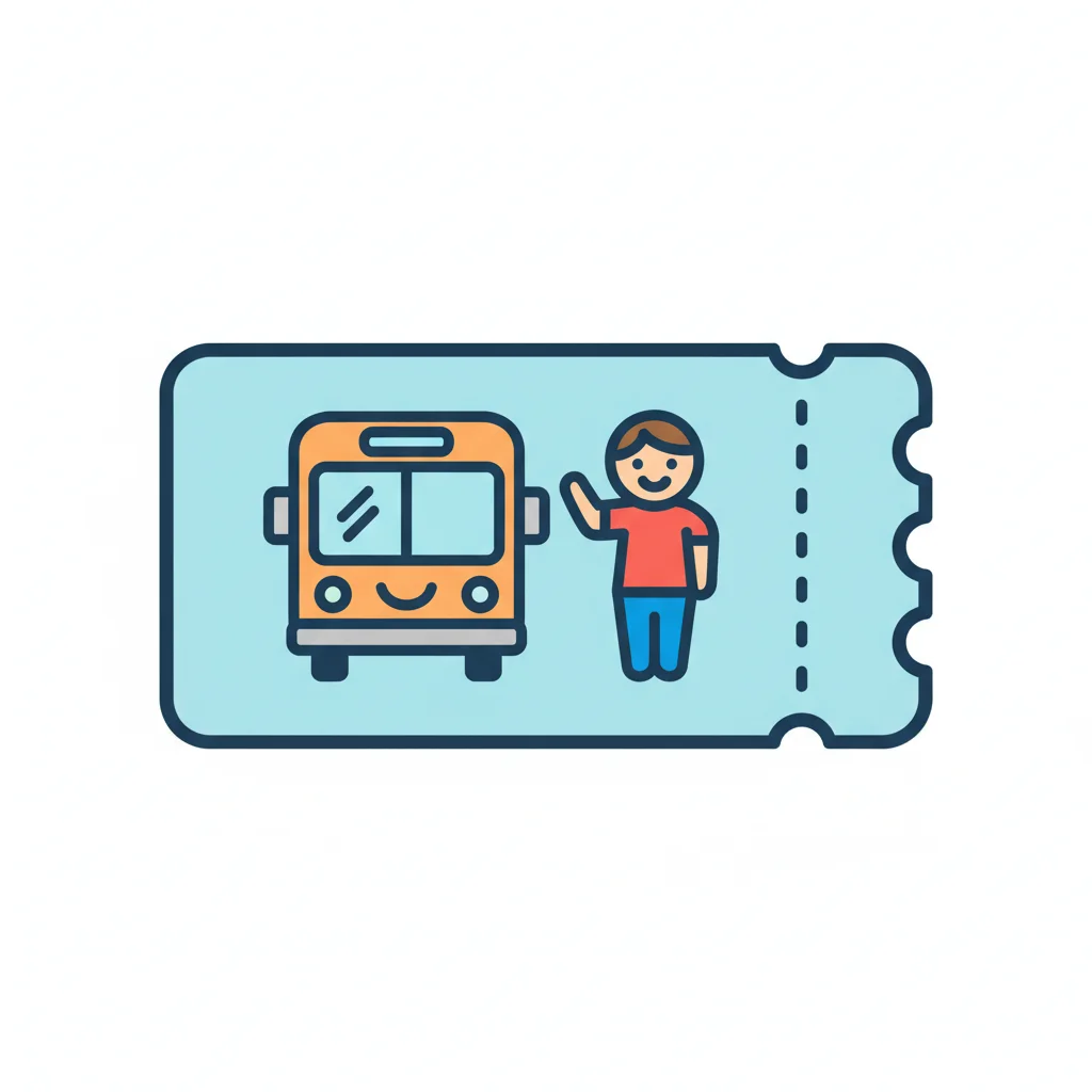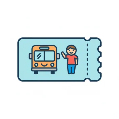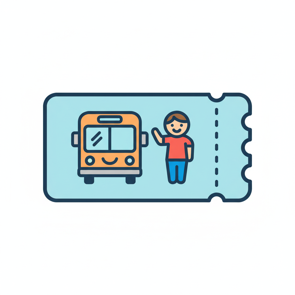 Ein Fahrkarte mit einem Bus und einer person, die winkt.