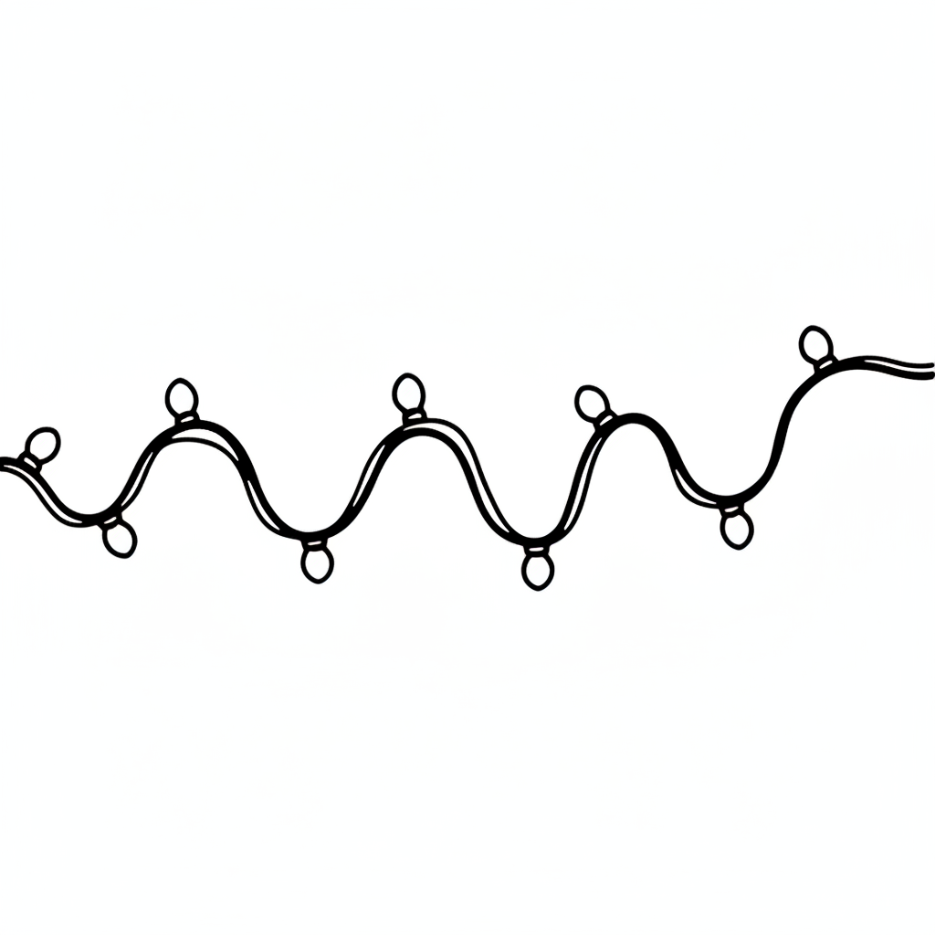 Eine stilisierte, gewundene Linie mit Kreisen.