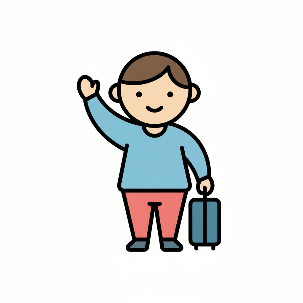 Minimalistische Vektorillustration im flächigen Icon-Stil. Sehr einfache, reduzierte Formen mit klaren, dicken Konturen und wenigen Details. Flächige Farben ohne Verläufe oder Texturen, ruhige Farbpalette, klare Silhouette und gut lesbare, freundliche Figur. Moderne, kindgerechte Lernillustration im Stil einfacher Piktogramme, sauberer Hintergrund und übersichtliche Komposition. Hoher Kontrast, isoliert auf weißem Hintergrund. WICHTIG: KEIN TEXT im Bild. Hintergrund: Rein weiß.