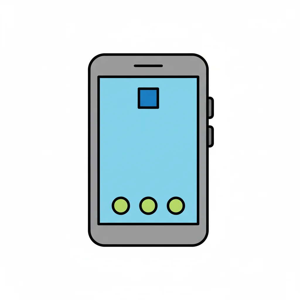 Ein einfaches Smartphone-Icon mit einem blauen Quadrat und drei grünen Kreisen.