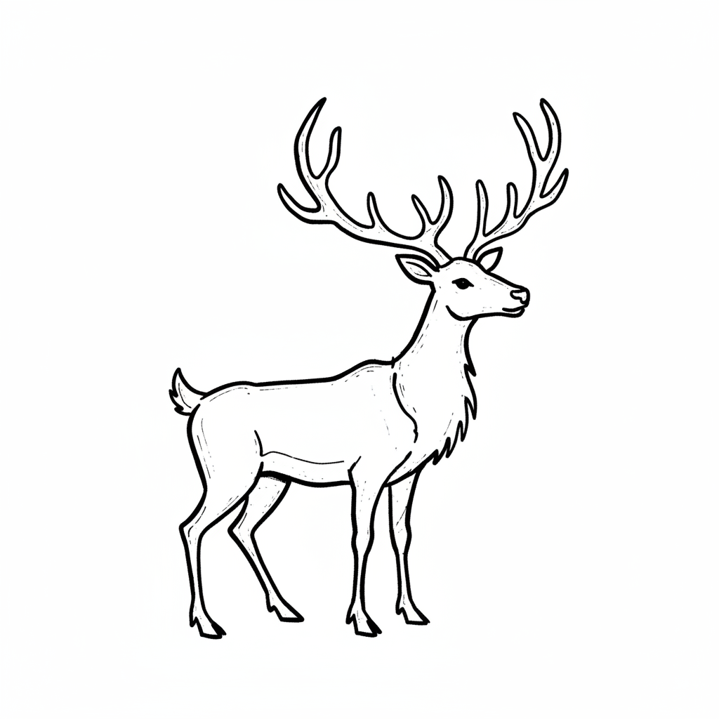 Ein stilisiertes Reh mit großen Geweih in Seitenansicht.