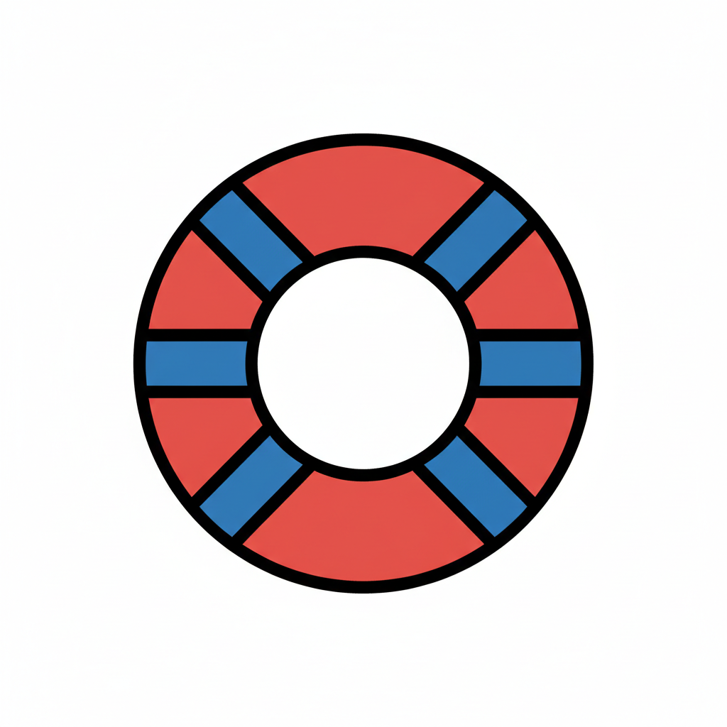 Einfache Illustration eines Rettungsrings in Rot und Blau auf weißem Hintergrund.