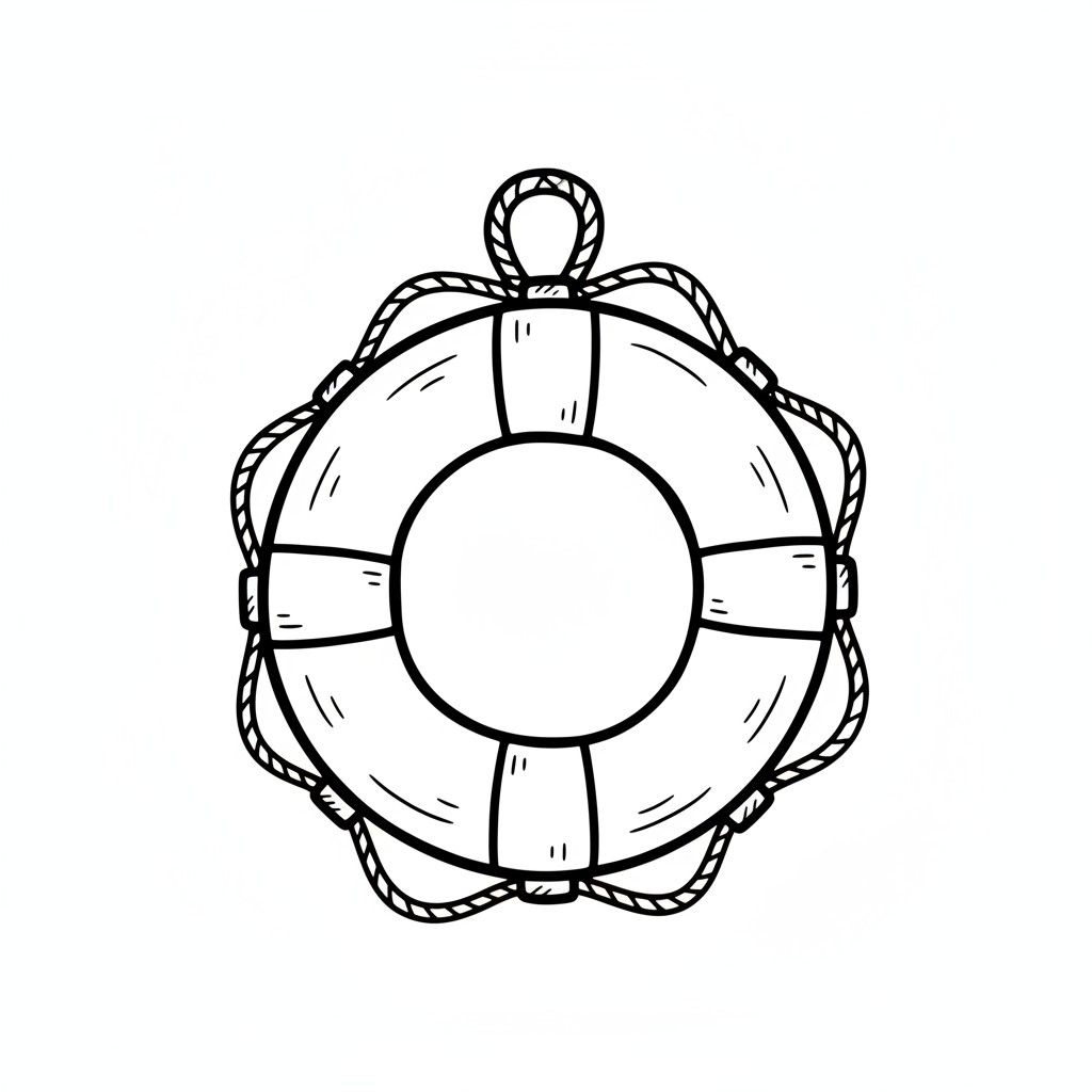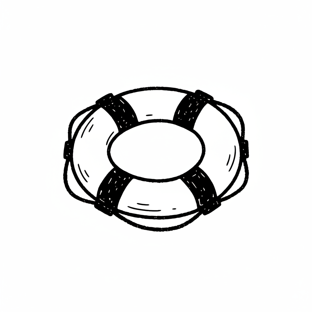Schwarz-weiße Skizze eines Rettungsrings im Doodle-Stil.