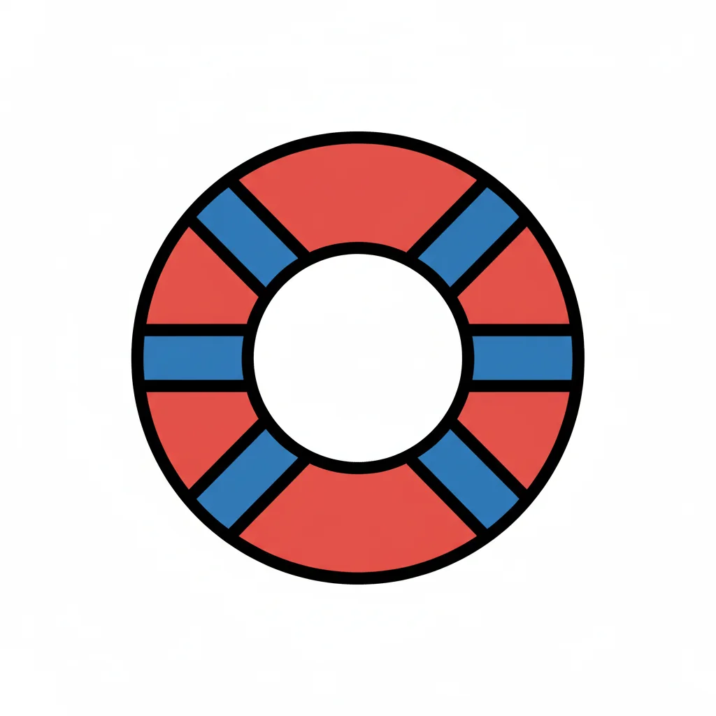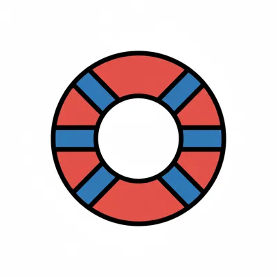 Illustration eines Rettungsrings mit roten und blauen Segmenten und Seil auf weißem Hintergrund.