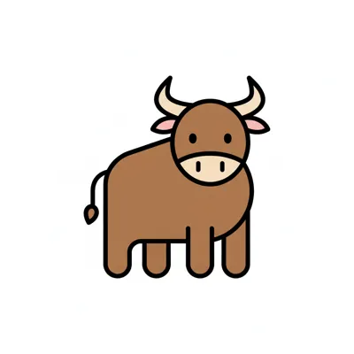 Ein einfaches, cartoonhaftes Bild eines braunen Rindes mit Hörnern.