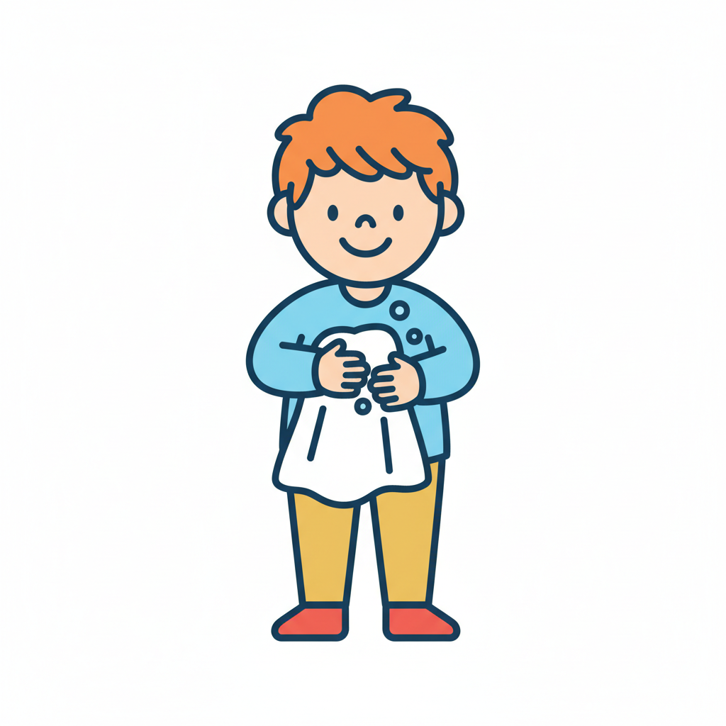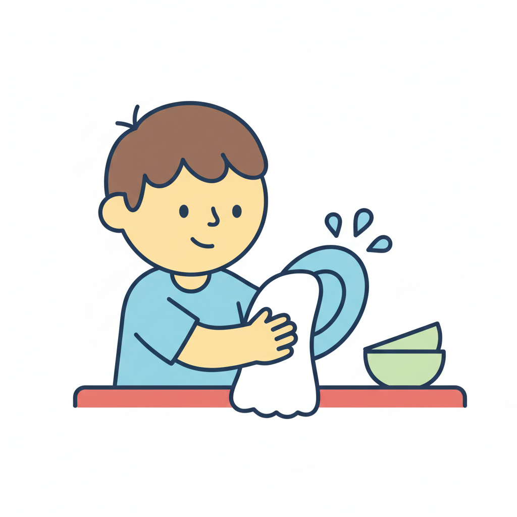 flaticon-stil junge lächeln tuch hände abtrocknen