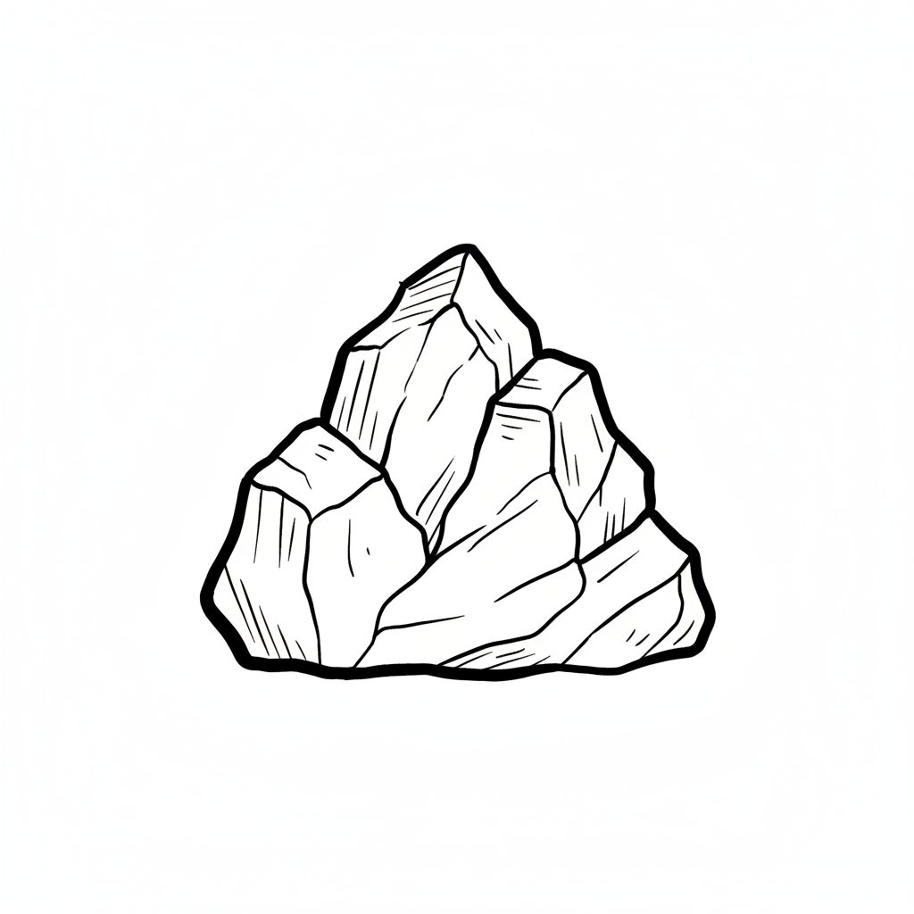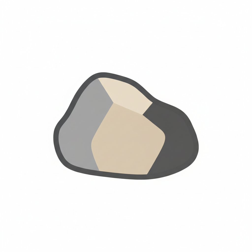 Stilisierte Darstellung eines irregulären Steins in verschiedenen Grautönen.