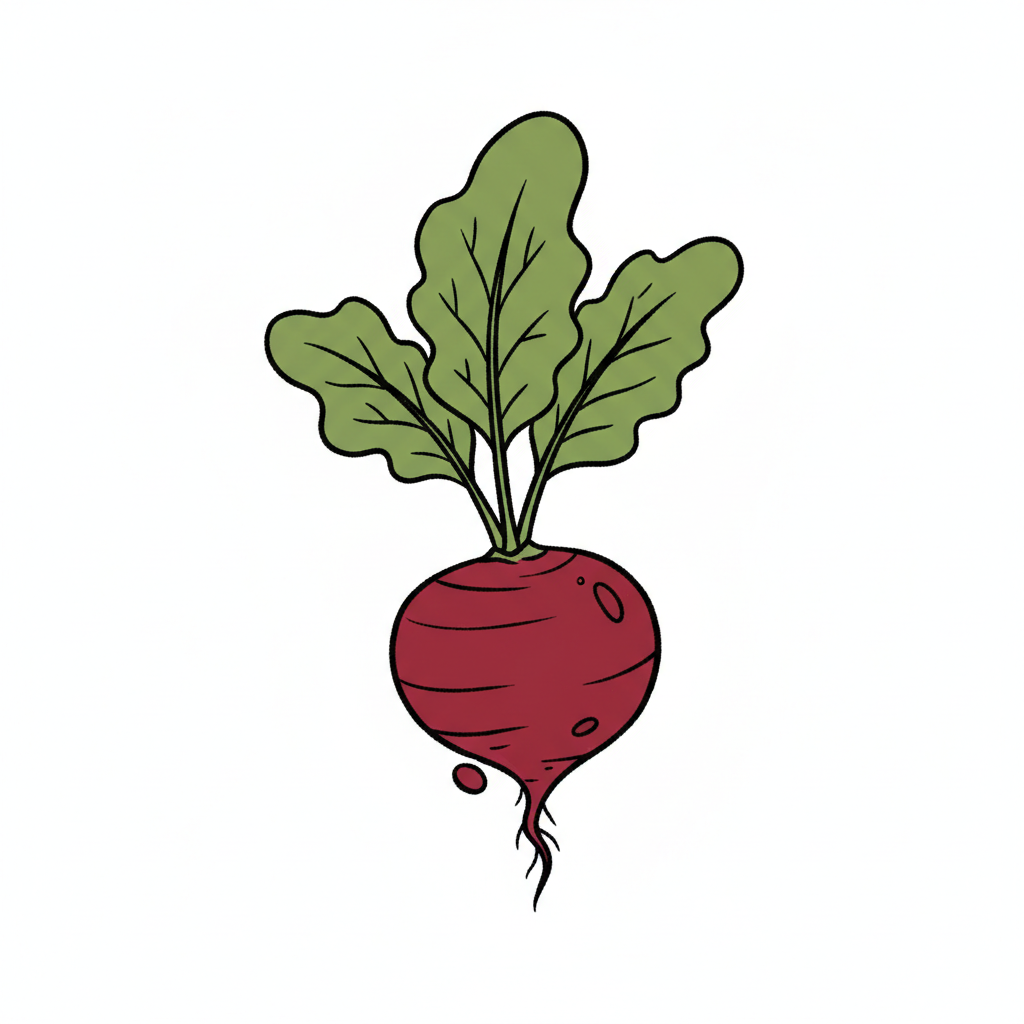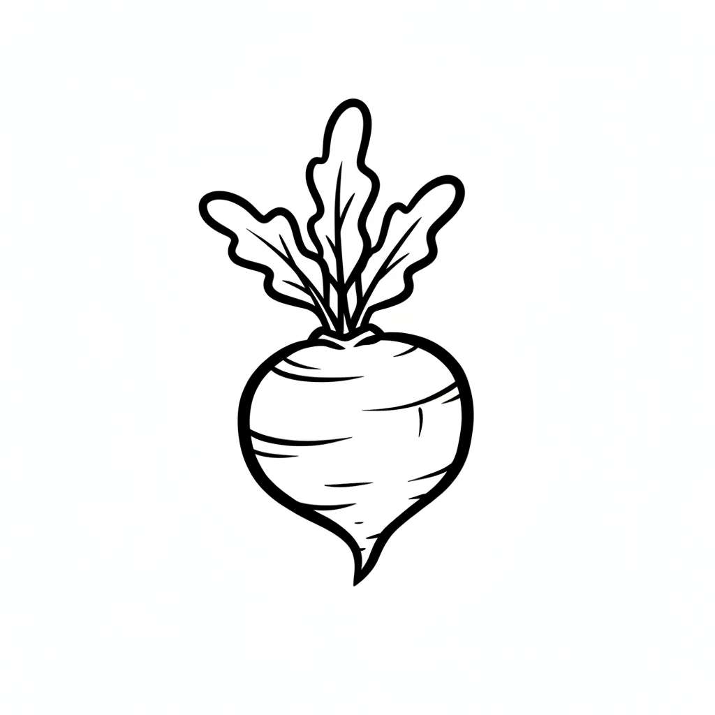 Eine einfache Zeichnung einer Rübe mit grünen Blättern.