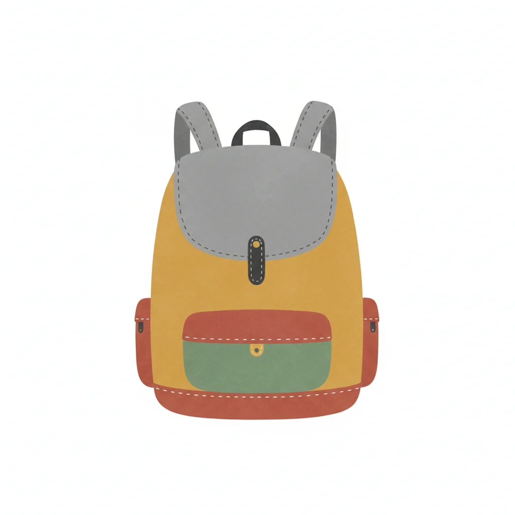 Bunter Rucksack mit mehreren Taschen in verschiedenen Farben.