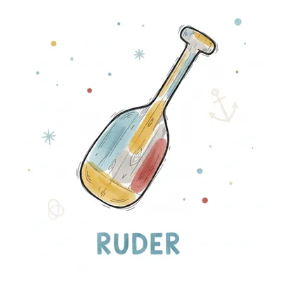 Buntes Ruder im Aquarellstil mit maritimen Akzenten und dem Wort 'RUDER' auf weißem Grund.