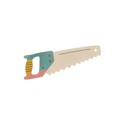Illustrierte Handsäge mit beiger Klinge und farbigem Griff auf weißem Grund.