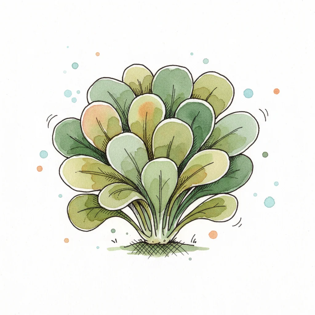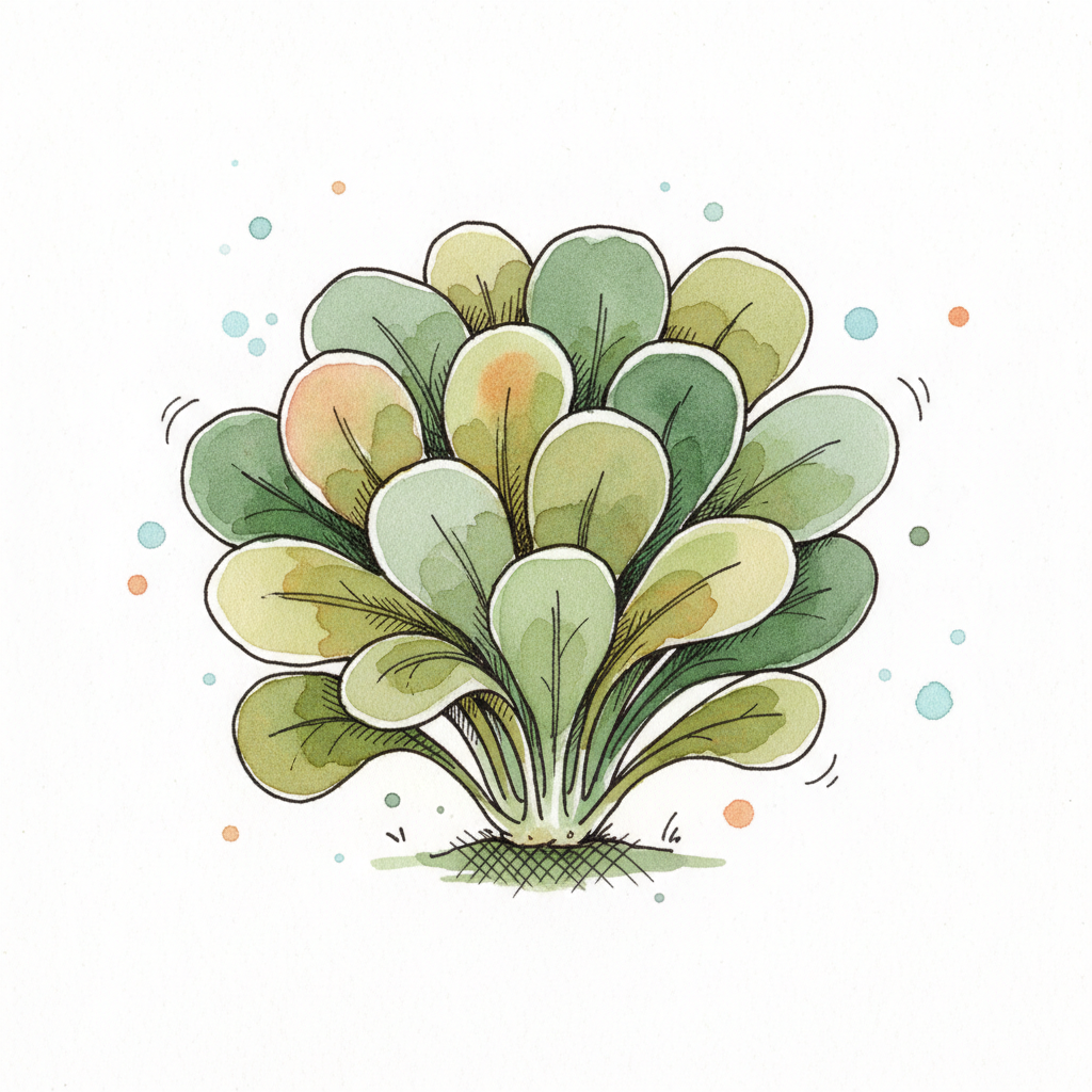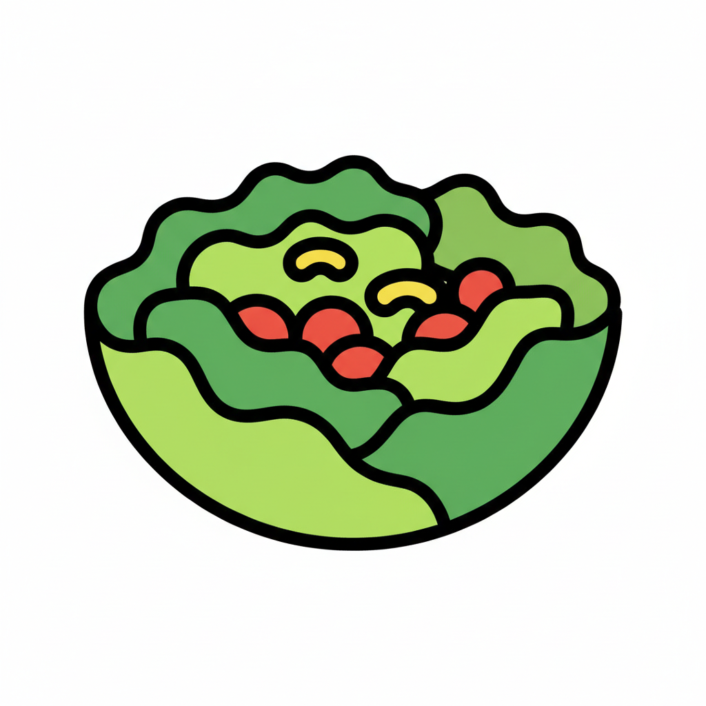 Eine grüne, cartoonartige Darstellung eines Kopfes von Salat.