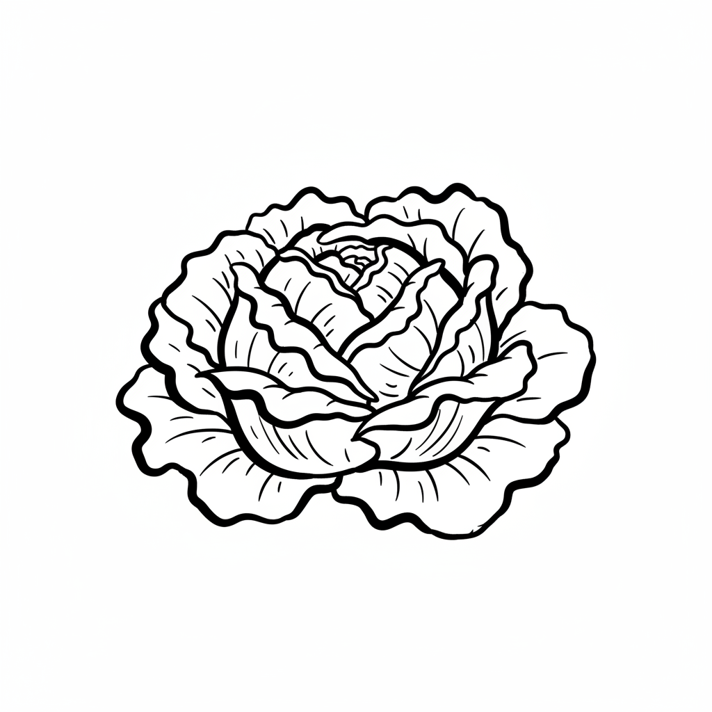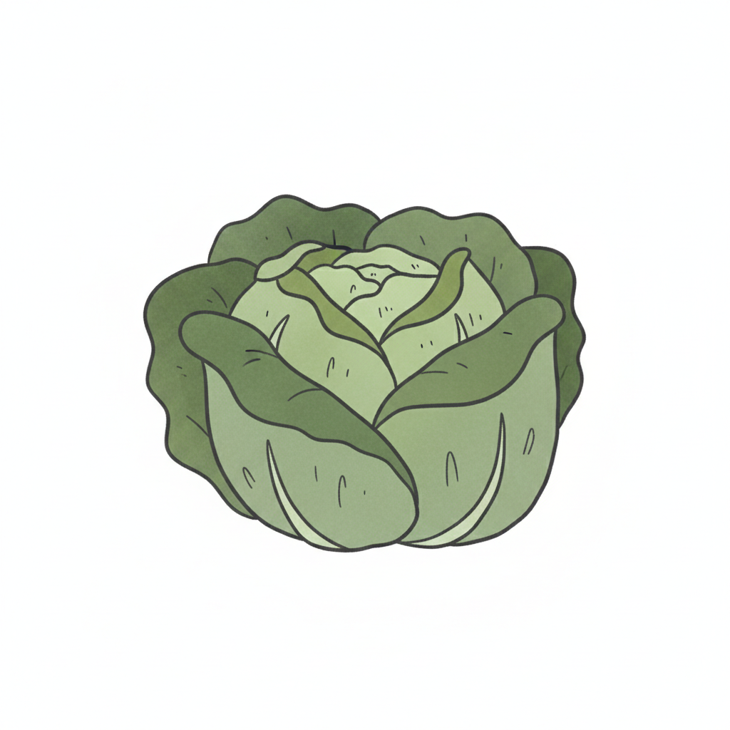 Zeichnung eines eleganten, runden Kopfsalats mit detaillierten Blättern.
