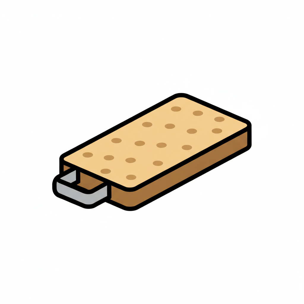 Gezeichnetes, rechteckiges Knäckebrot mit körniger Oberfläche und geschichteten Seiten.
