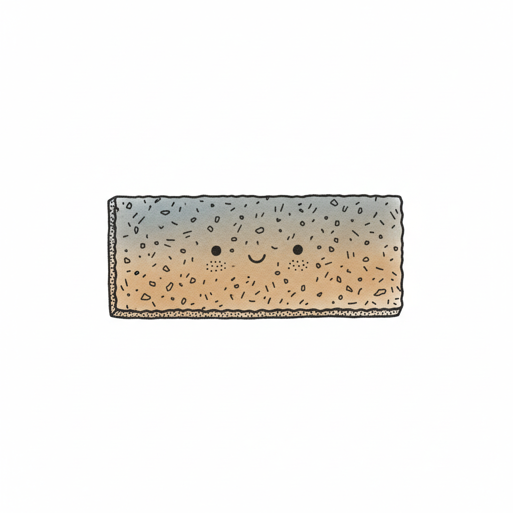 Aquarell-Illustration eines rechteckigen Toastbrots oder Kekses mit braunen Sprenkeln auf Weiß.