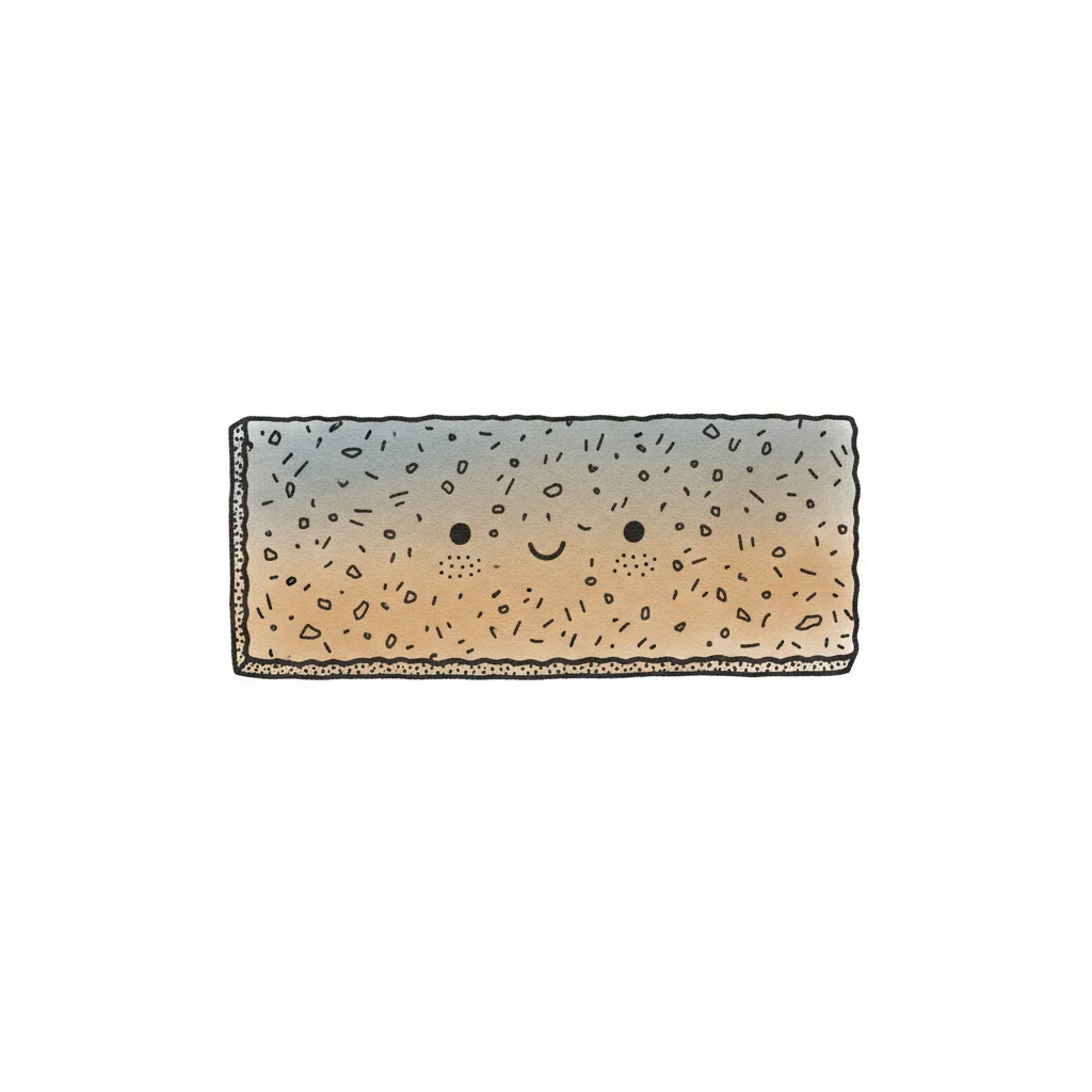 Ein süßer, lächelnder Cartoon-Riegel mit Farbverlauf und Sprenkeln auf weißem Hintergrund.