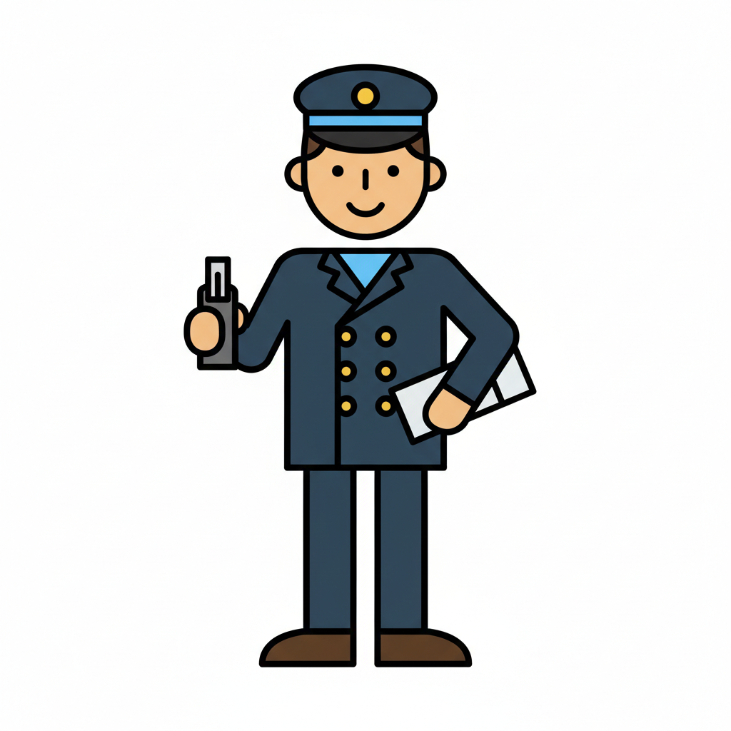Illustration eines Postboten in Uniform mit Scanner und Briefen, lächelnd.
