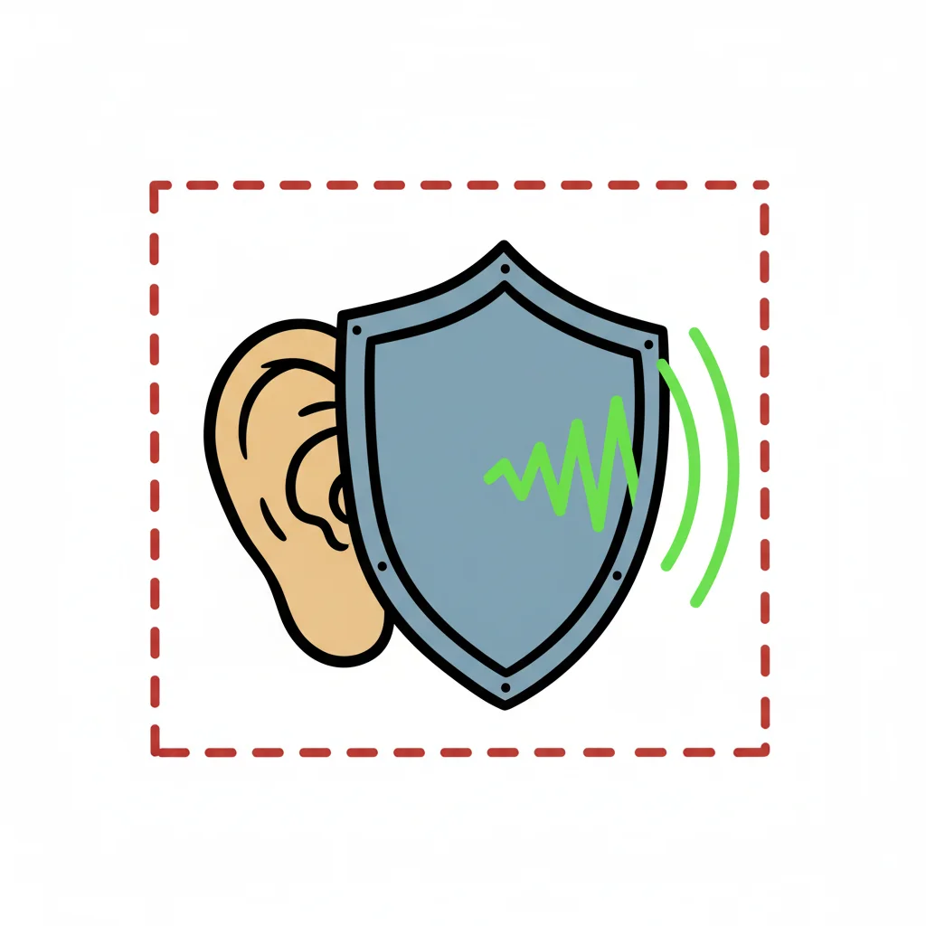 Ein Schild schützt ein Ohr vor Schallwellen. Symbolisiert Gehörschutz und Lärmprävention.