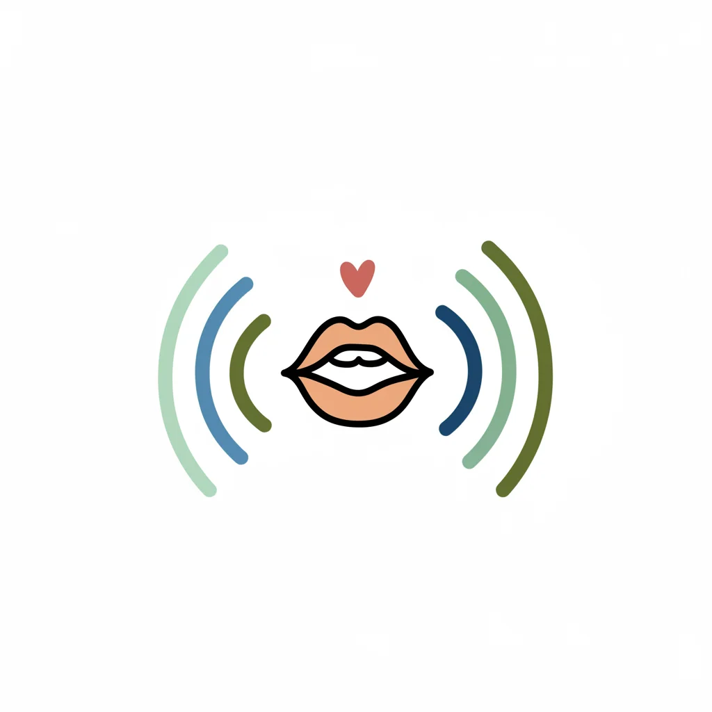 Stilisierte Lippen mit Schallwellen und einem Herz, symbolisiert Kommunikation, Sprache oder Gesang.