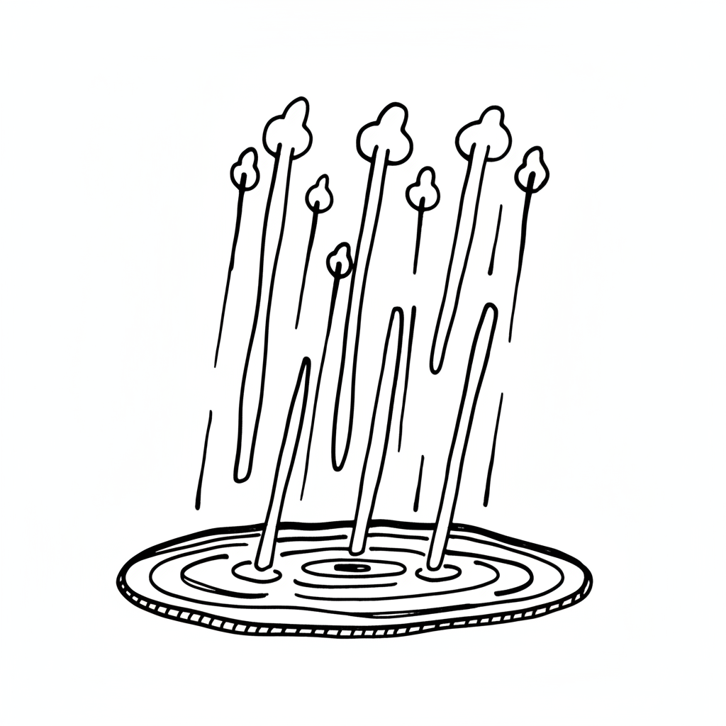 Ein einfaches, skizziertes Bild mit Spritzern auf einer Wasseroberfläche.