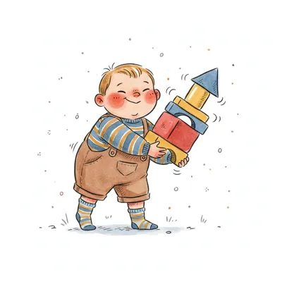Niedliche, kindgerecht illustrierte Szene mit einem Kind oder einer Person als Hauptfigur, vor rein weißem Hintergrund, im frech-nordischen Aquarell-Skizzenstil. Klare, leicht wackelige Tuschekonturen, sichtbare Pinsel- und Strichtextur, dezente Schraffuren, weiche handgemalte Farbflächen in gedeckten Farben. Einfache, runde Formen. Keine harten Schatten, sondern sanfte, transparente Aquarellschichten. Leicht raue, handgezeichnete Linien statt glatter Vektorkanten. Subtile, vereinzelte Kritzelpunkte oder kleine Details im Hintergrund (wie Pünktchen oder feine Striche), aber keine echte Umgebung oder Landschaft. Die Figur ist mittig zentriert. Insgesamt charmant, humorvoll, warm und handgemacht wirkend. WICHTIG: Das Bild darf ABSOLUT KEINEN TEXT, KEINE BUCHSTABEN und KEINE ZAHLEN enthalten.
