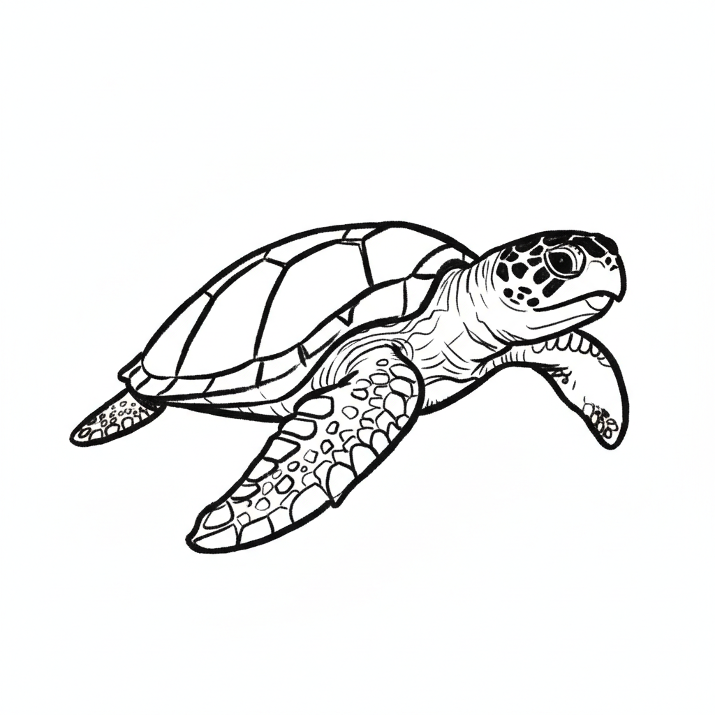 Eine zeichnerische Meeresschildkröte schwimmt elegant im Wasser.