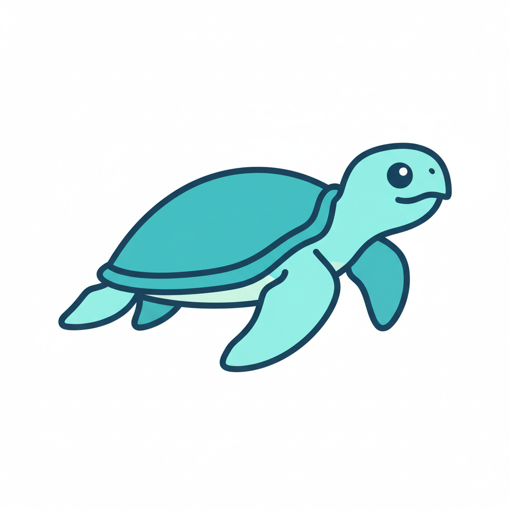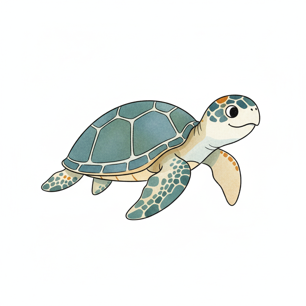 Eine stilisierte Meeresschildkröte in sanften Farben.