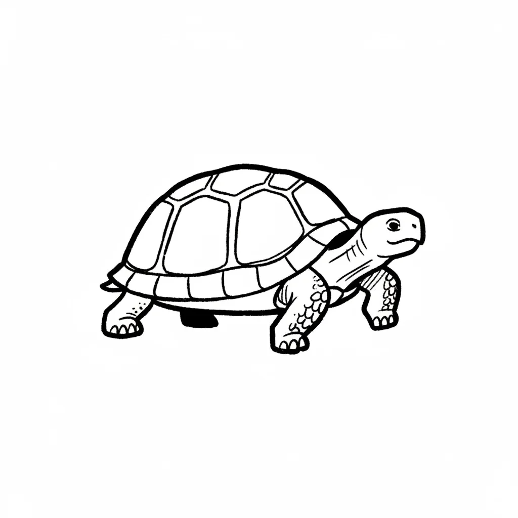 Eine einfache Zeichnung einer Schildkröte in seitlicher Ansicht.
