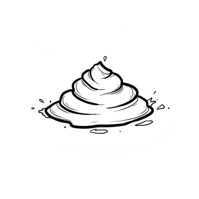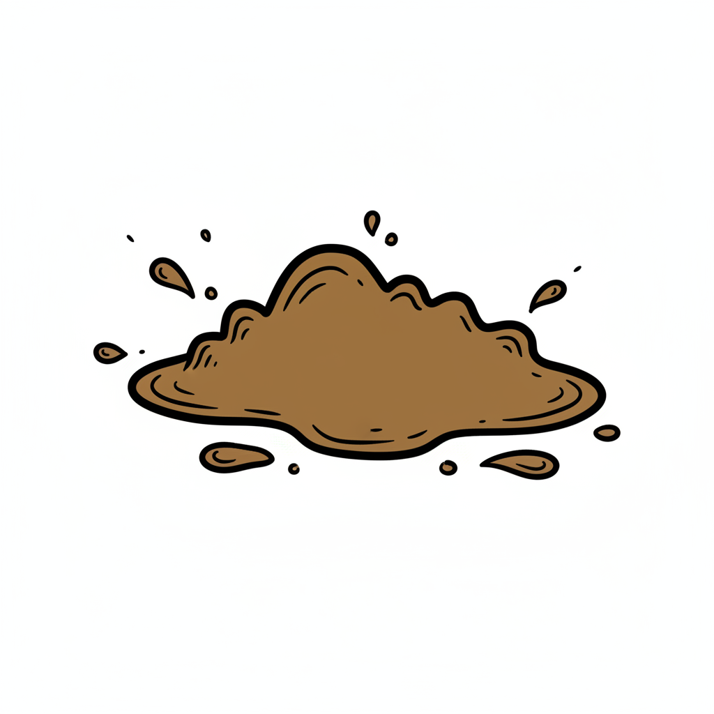 Ein brauner Matschfleck mit kleinen Spritzern im Comic-Stil auf weißem Hintergrund.
