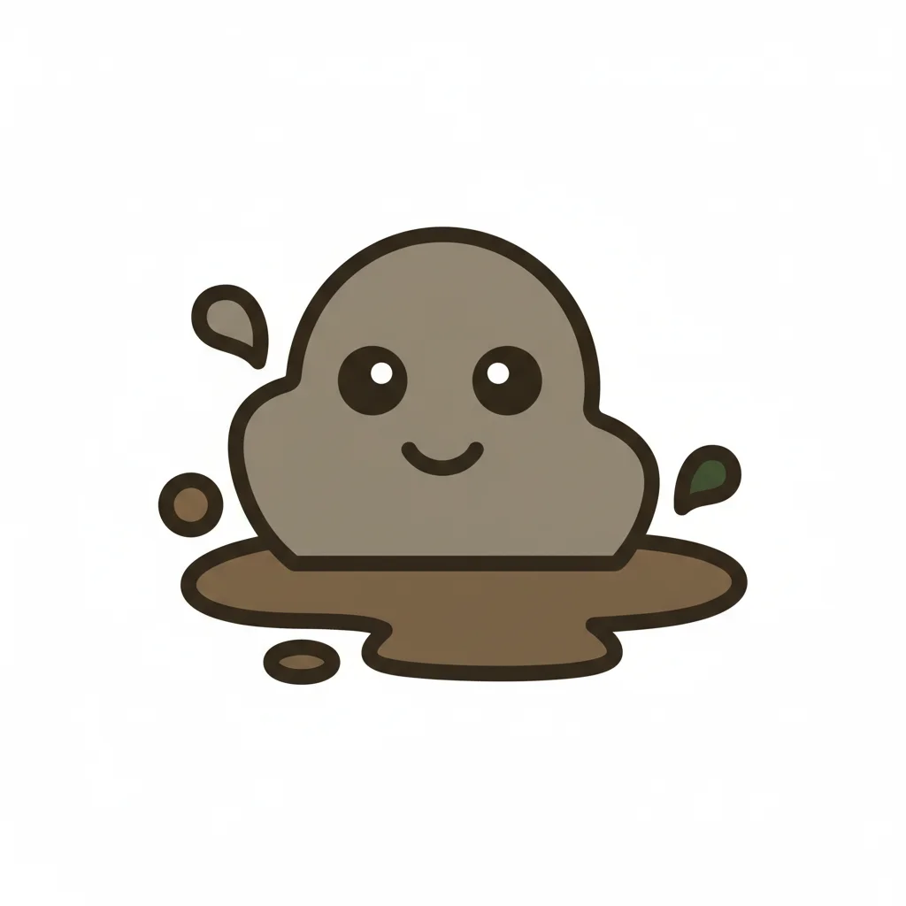 Niedlicher, lächelnder Schlamm-Blob in einer Pfütze mit Spritzern.