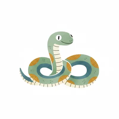 Eine cartoonhafte Schlange mit grünbraunem Muster.