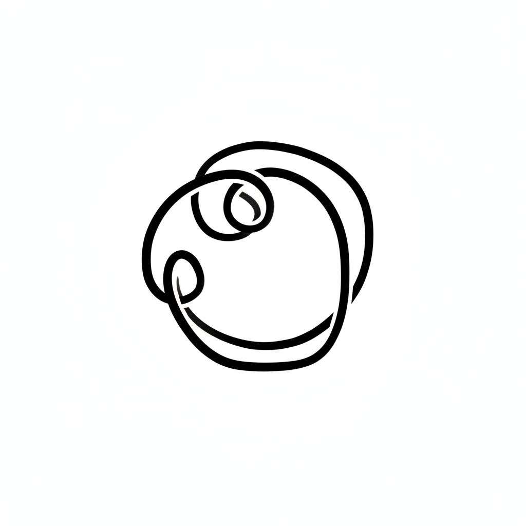 Abstrakte schwarze Linienzeichnung mit Schleifen und Knoten auf weißem Hintergrund.