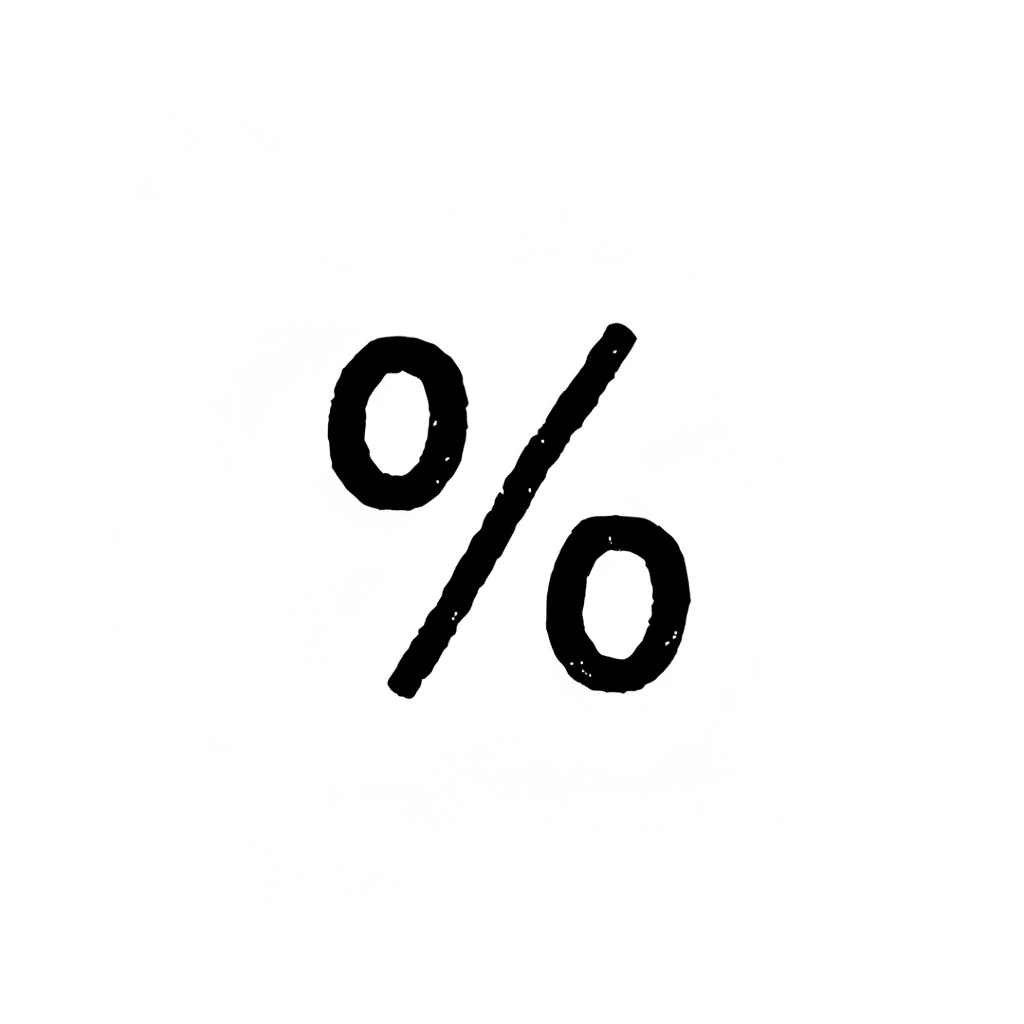 Ein schwarzes, leicht texturiertes Prozentzeichen auf einem schlichten weißen Hintergrund.
