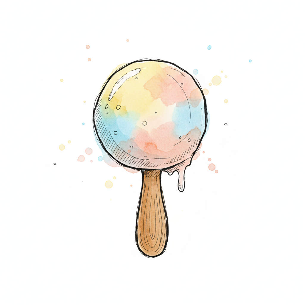 Buntes, schmelzendes Eis am Stiel in Aquarell-Optik mit Holzstiel auf weißem Grund.