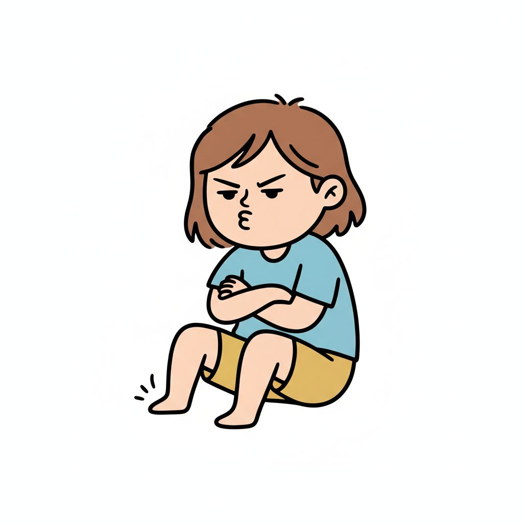Ein Mädchen mit verschränkten Armen und verärgertem Gesichtsausdruck.