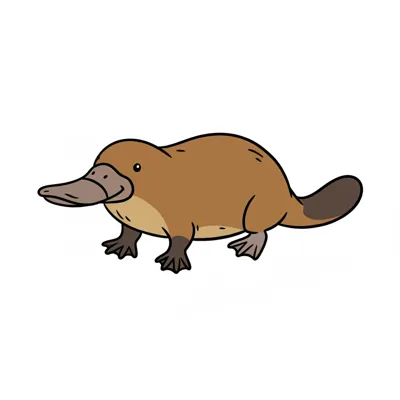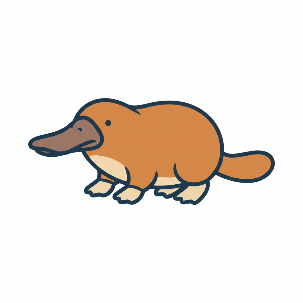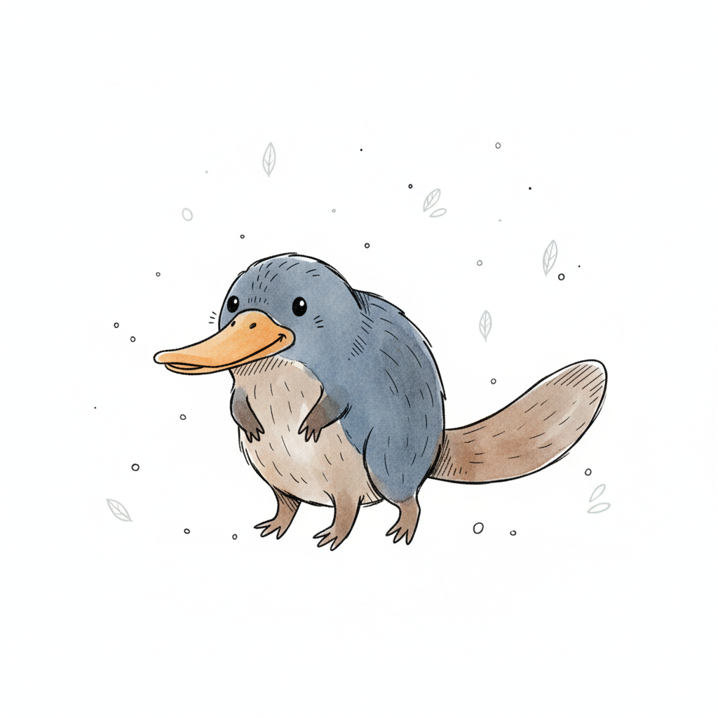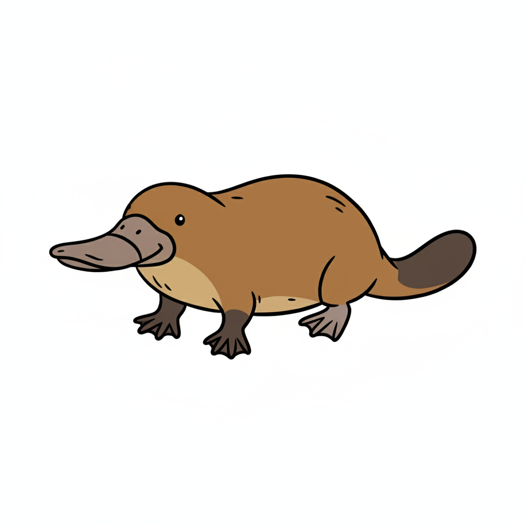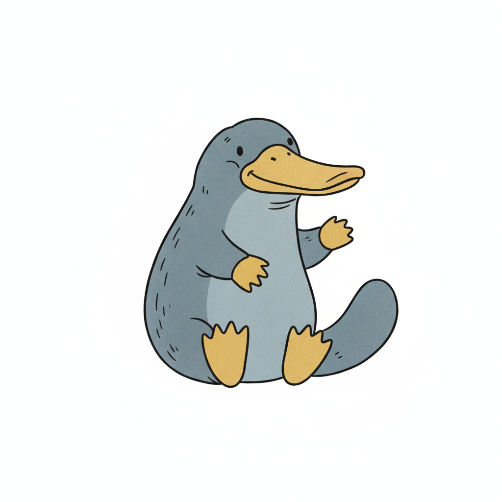 Eine cartoonhafte Darstellung eines Schnabeltiers, das freundlich aussieht.