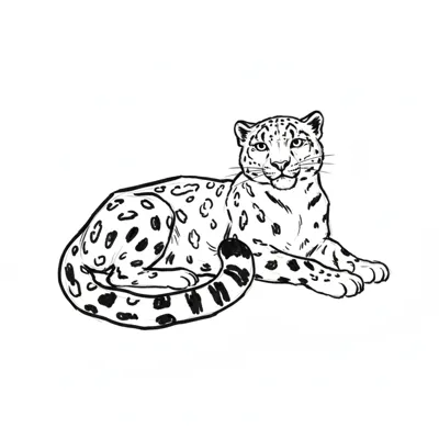 Eine stilisierte Zeichnung eines Leoparden, der entspannt liegt.