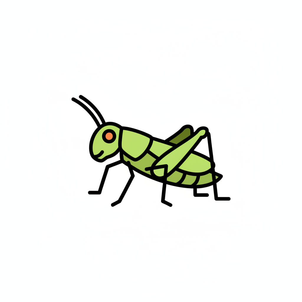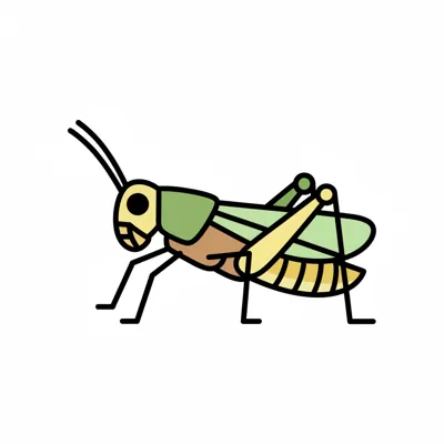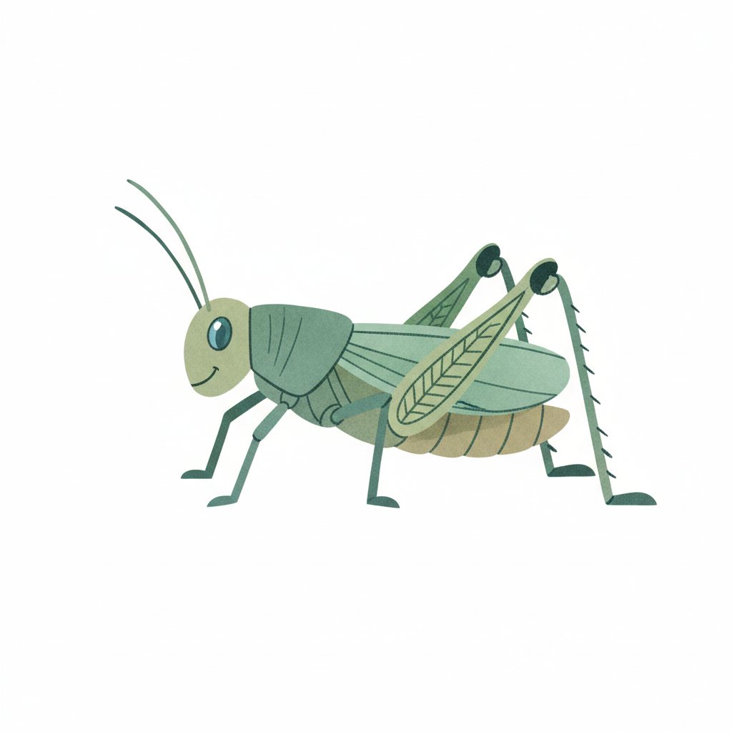 Eine stilisierte Darstellung einer grünlichen Heuschrecke.