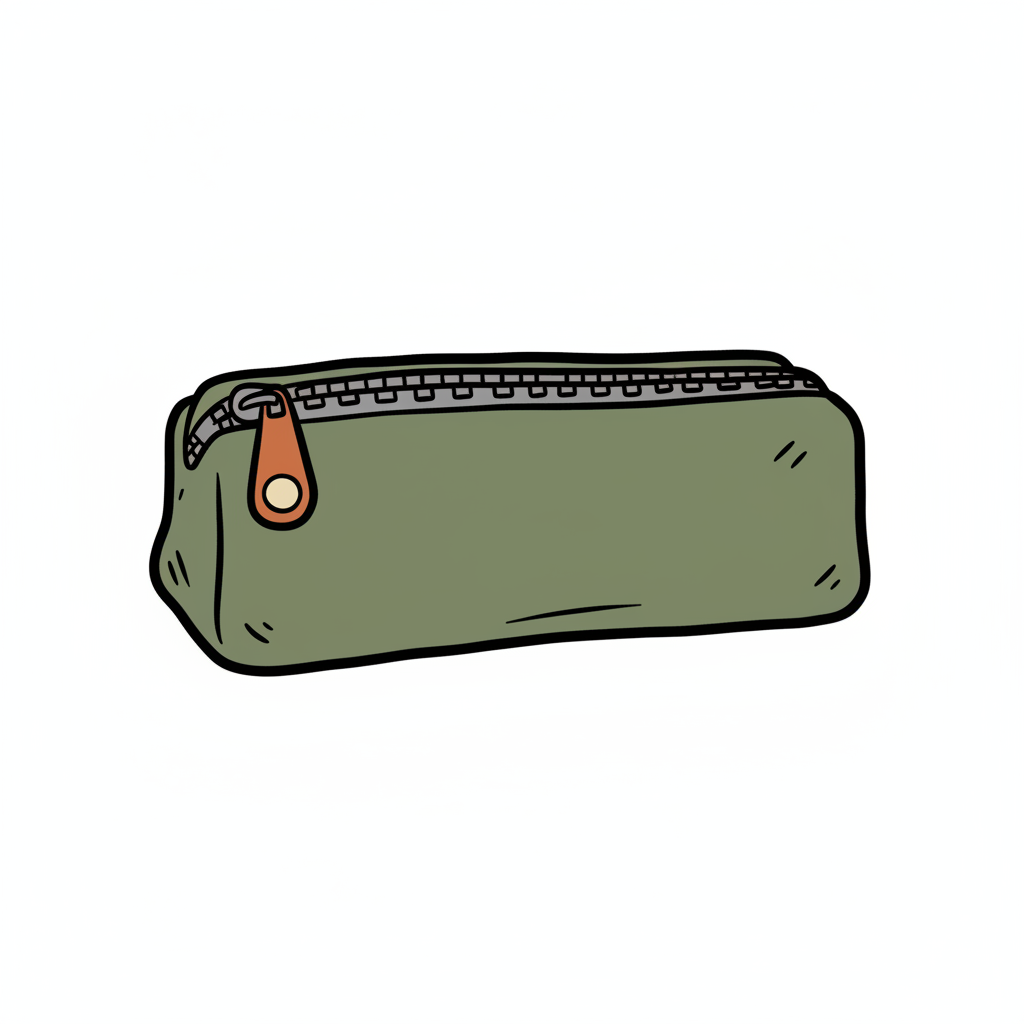 Eine grüne, rechteckige Federtasche mit Reißverschluss.