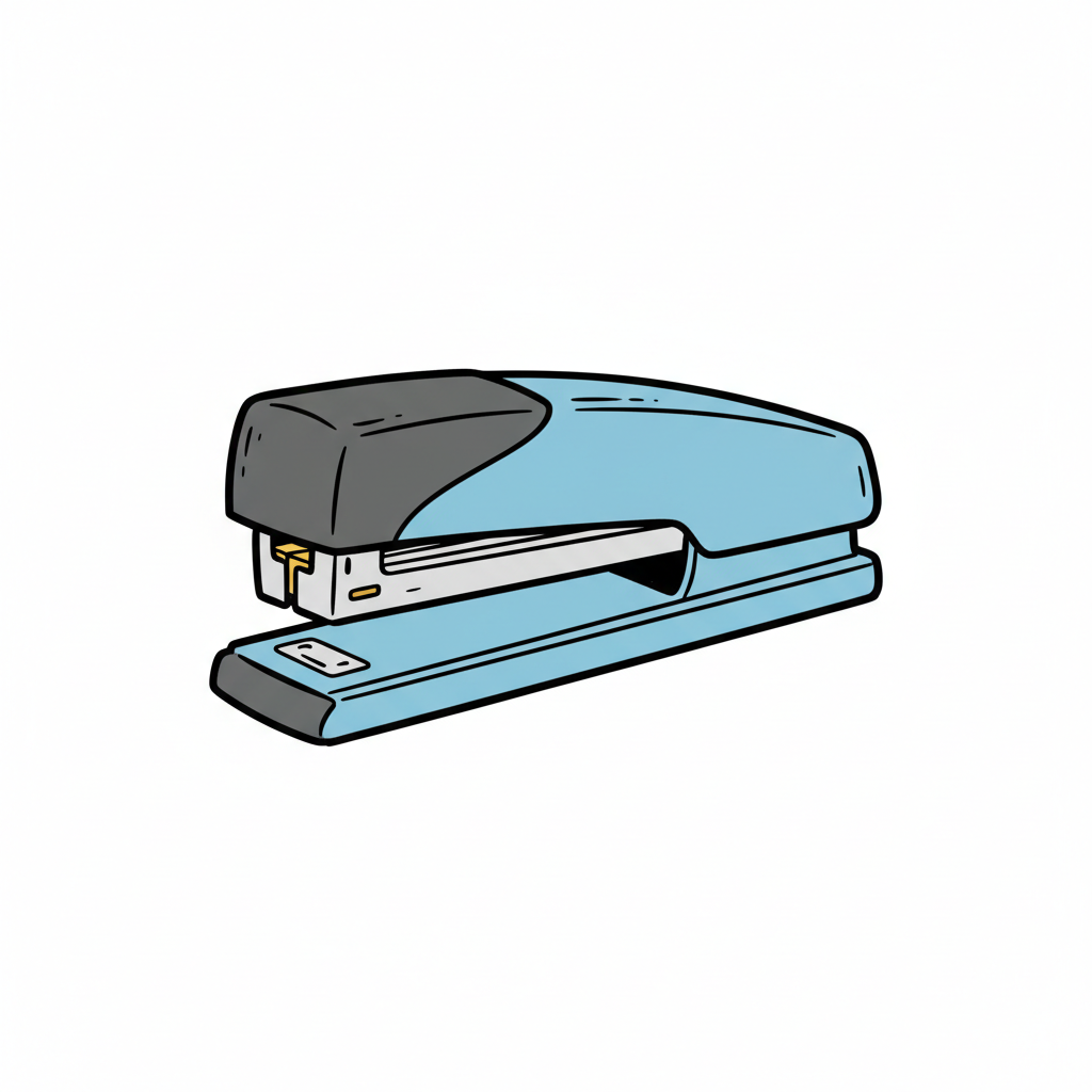 Eine einfache Illustration eines Tackers im Schwarz-Weiß-Stil.