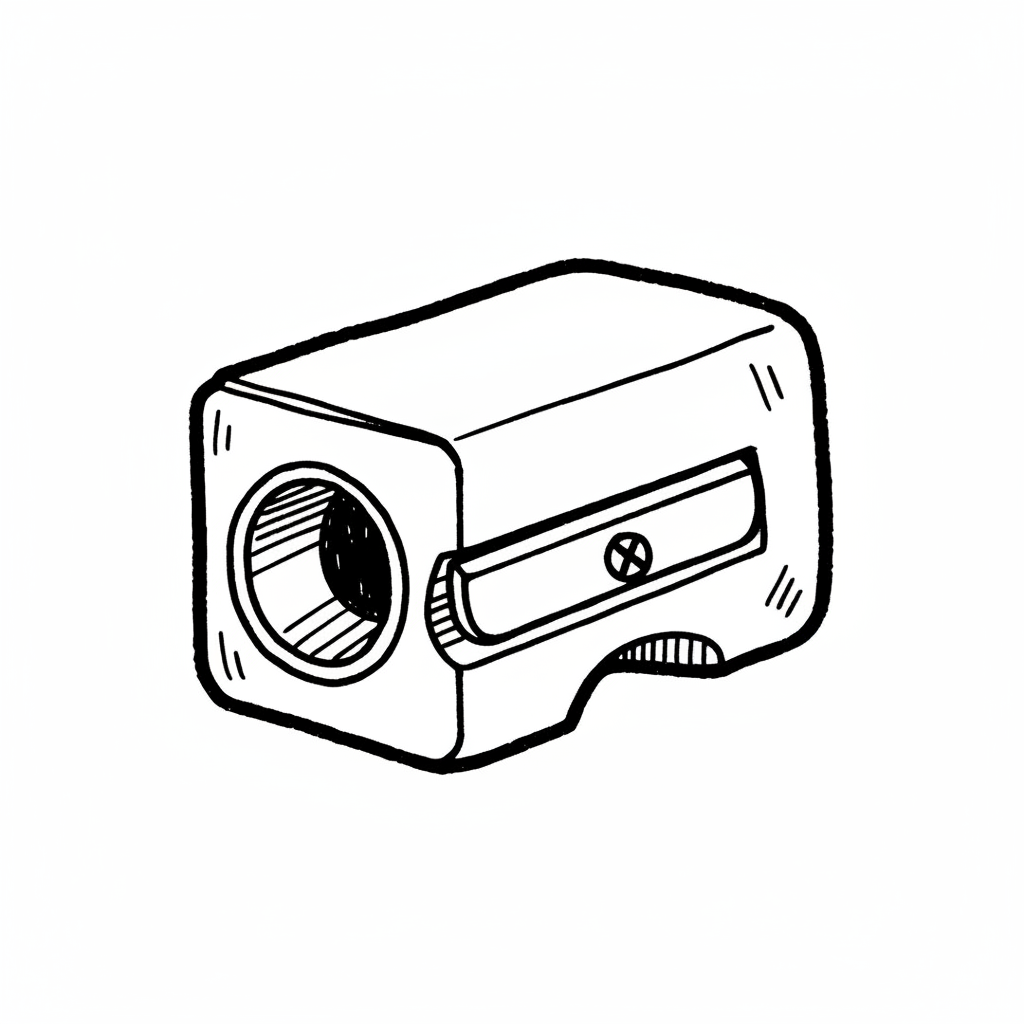 Schwarz-weiße Strichzeichnung eines einfachen Bleistiftanspitzers.