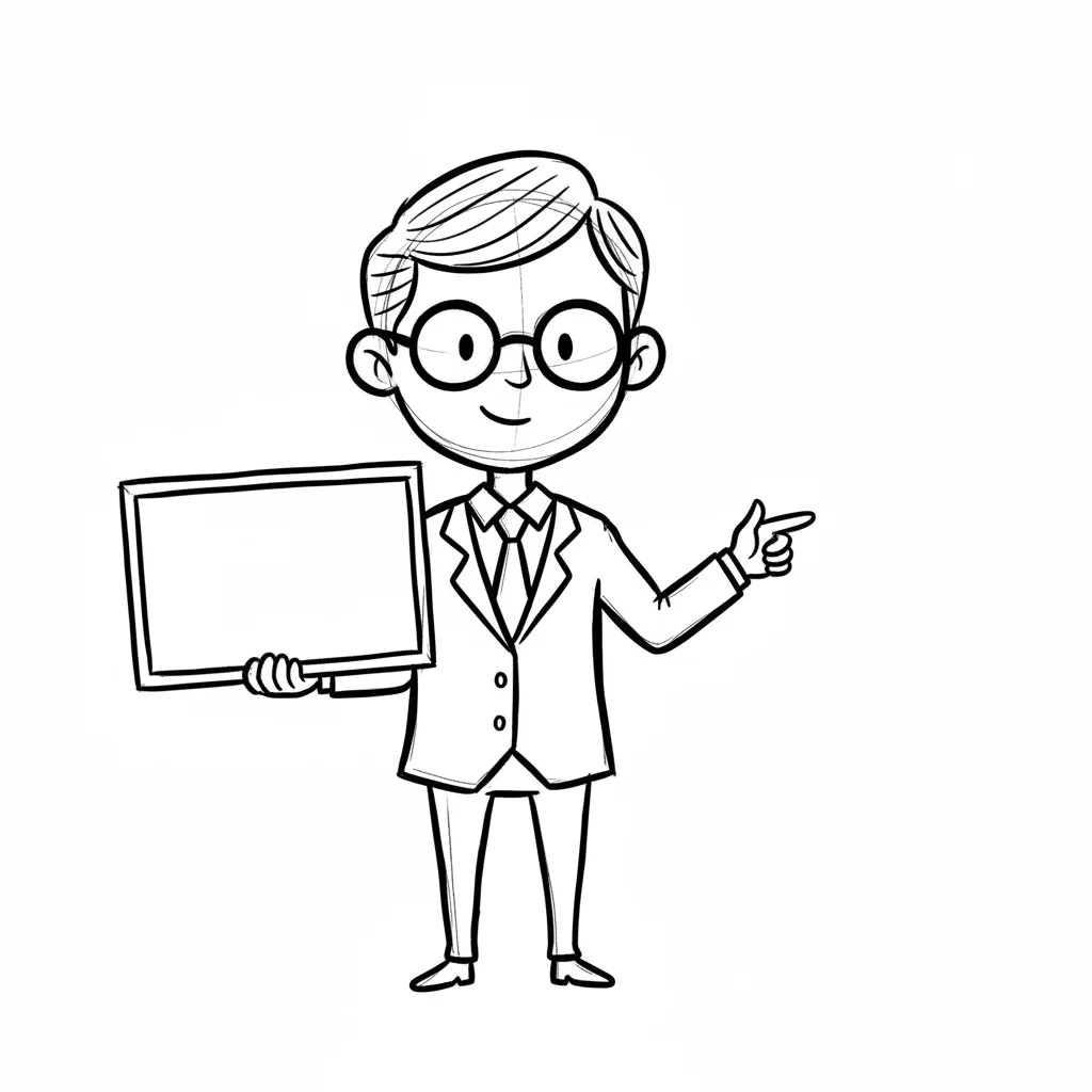 Ein junger Mann im Anzug hält ein leeres Schild und zeigt mit dem Finger.