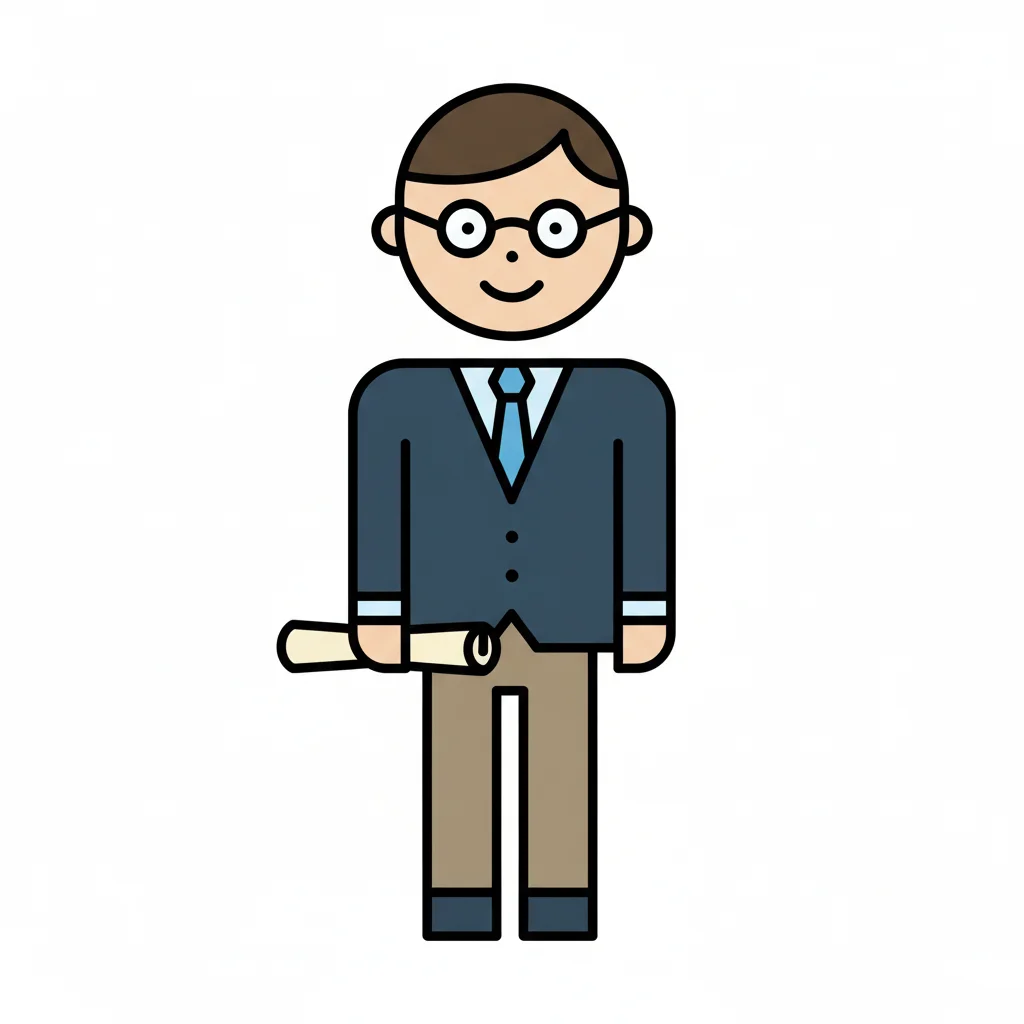 Minimalistische Vektorillustration im flächigen Icon-Stil. Sehr einfache, reduzierte Formen mit klaren, dicken Konturen und wenigen Details. Flächige Farben ohne Verläufe oder Texturen, ruhige Farbpalette, klare Silhouette und gut lesbare, freundliche Figur. Moderne, kindgerechte Lernillustration im Stil einfacher Piktogramme, sauberer Hintergrund und übersichtliche Komposition. Hoher Kontrast, isoliert auf weißem Hintergrund. WICHTIG: KEIN TEXT im Bild. Hintergrund: Rein weiß.