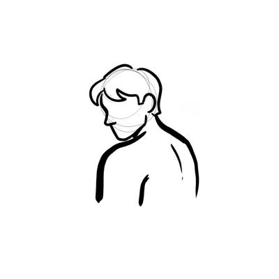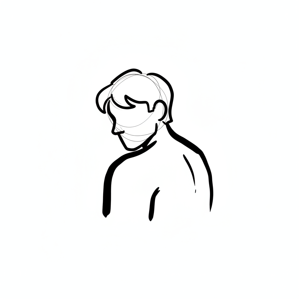 Minimalistische Strichzeichnung eines Mannes von hinten, der den Kopf gesenkt hat.
