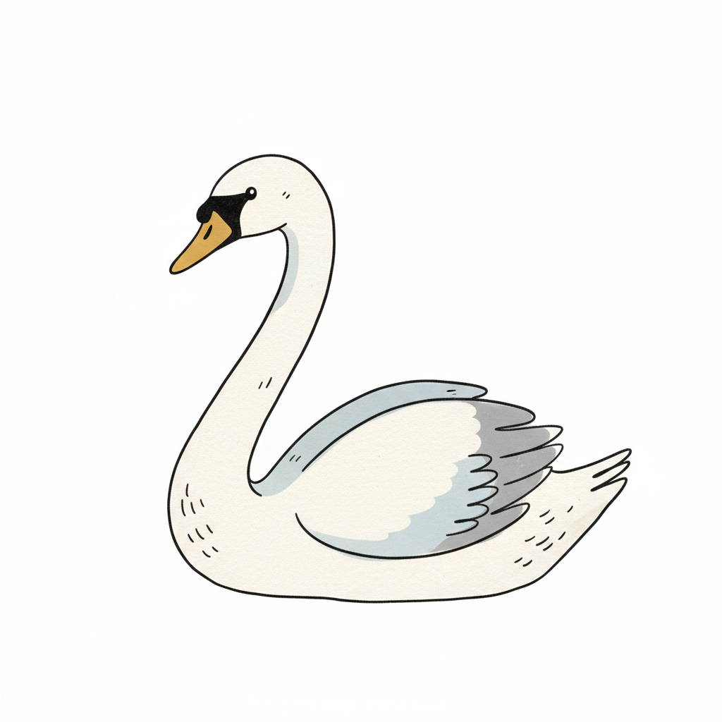 Ein stilisierter Schwan mit elegantem Körper und markanten Färbungen.