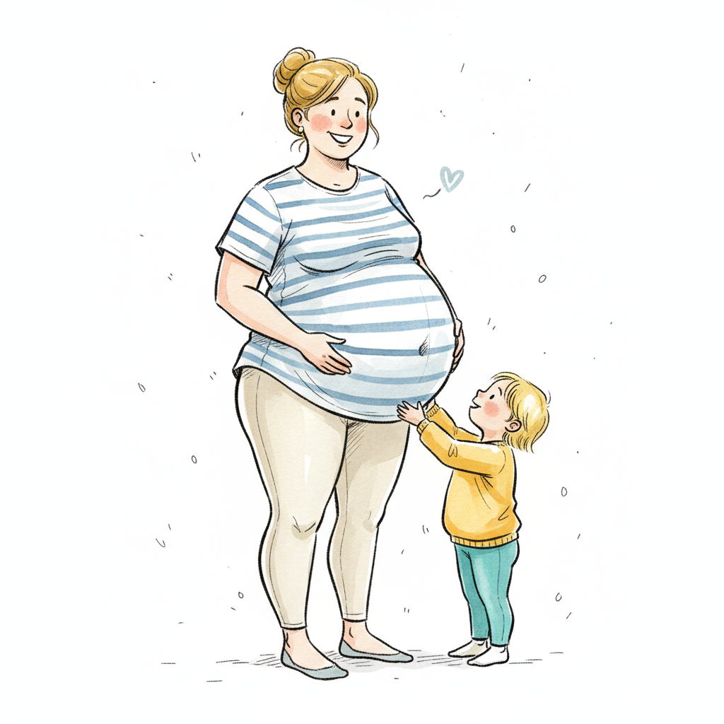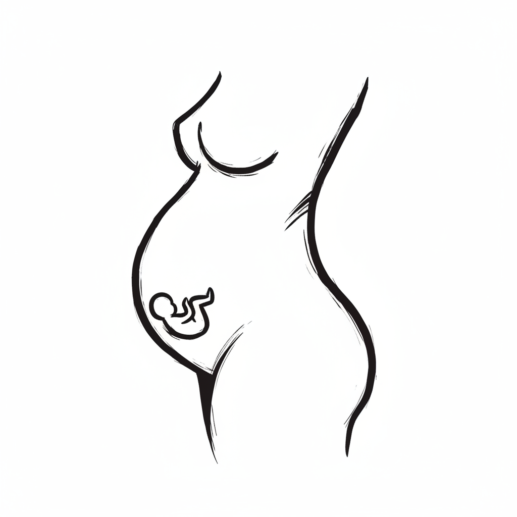 Stilisierte Schwarz-Weiß-Skizze einer schwangeren Frau, die ihren Babybauch hält.