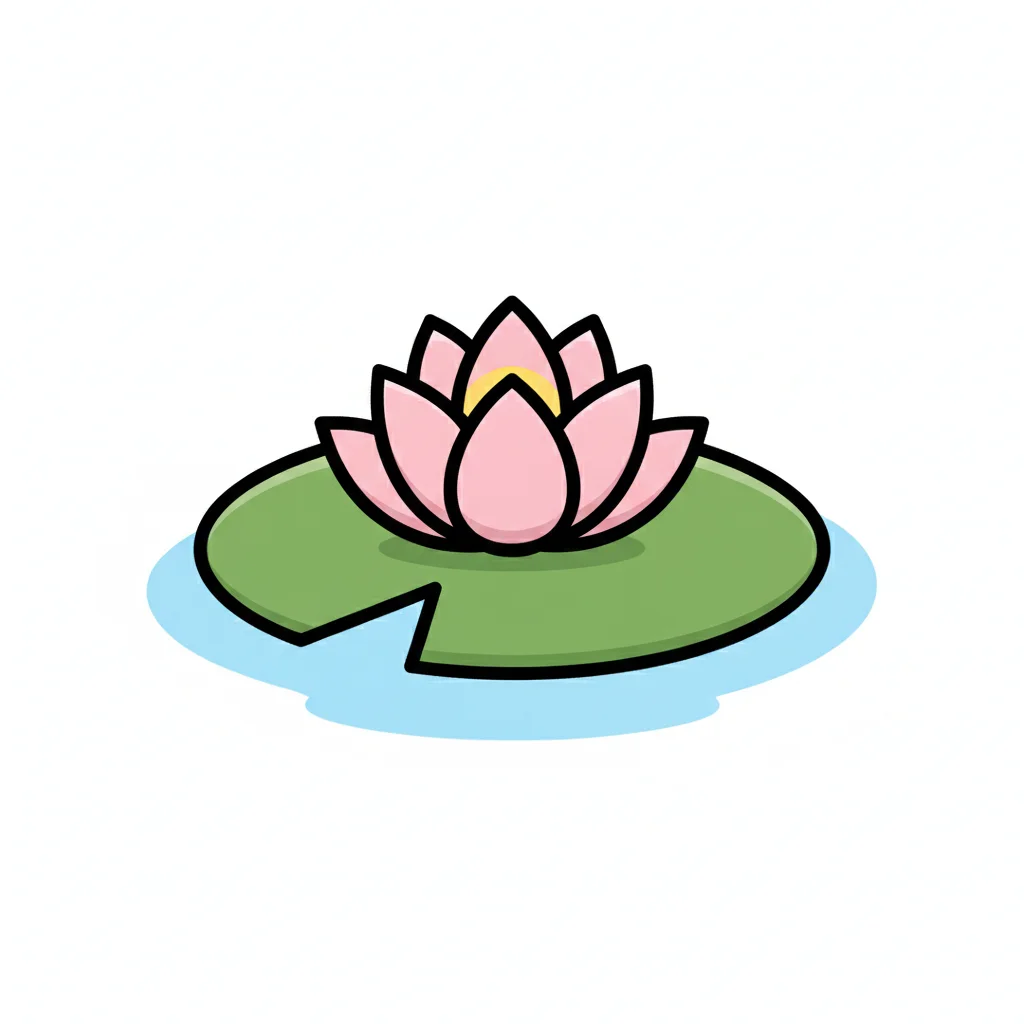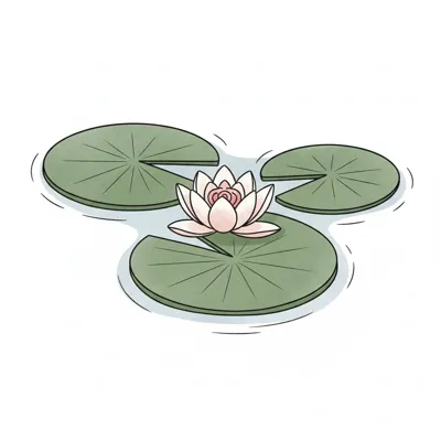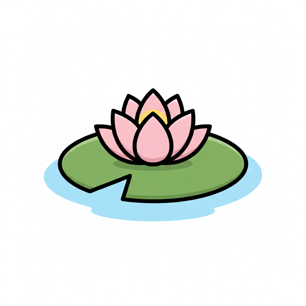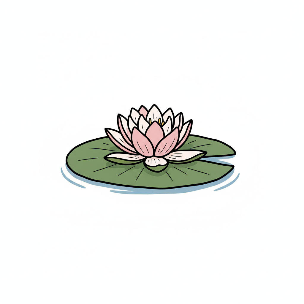 Stilisierte rosa-weiße Seerose auf einem grünen Blatt im Wasser, mit zarten Details.