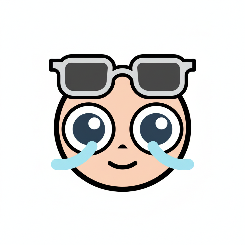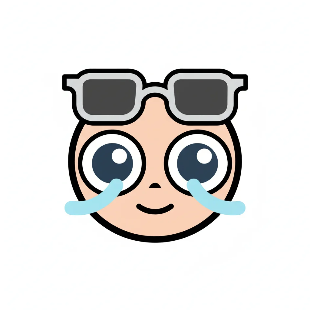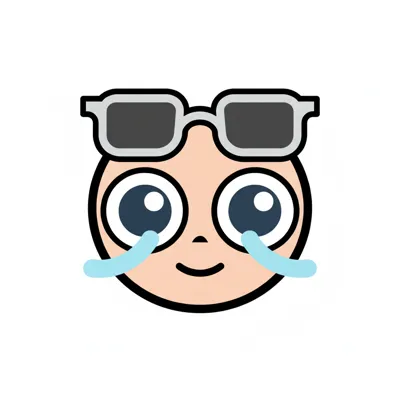 Lachendes Emoji-Gesicht mit Sonnenbrille und Tränen, das gleichzeitig Freude und Trauer ausdrückt.