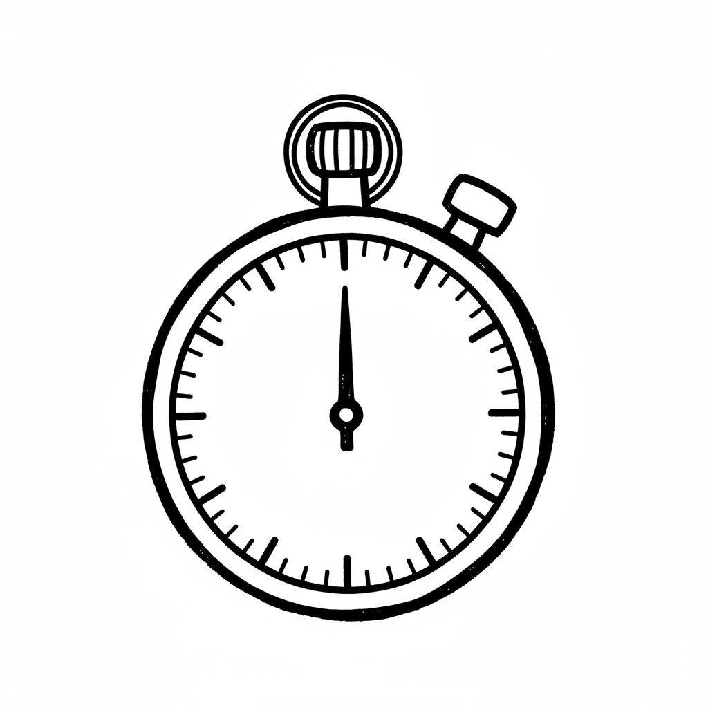 Schwarz-weiße Strichzeichnung einer klassischen Stoppuhr mit Zifferblatt und Zeiger.