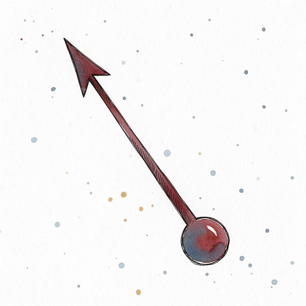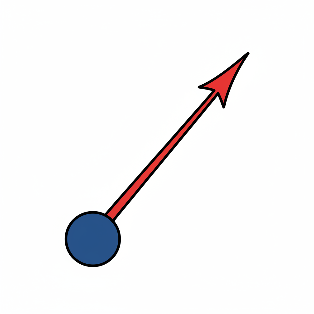 Ein blauer Punkt mit einem roten Pfeil, der schräg nach oben rechts zeigt.